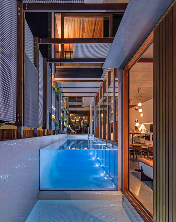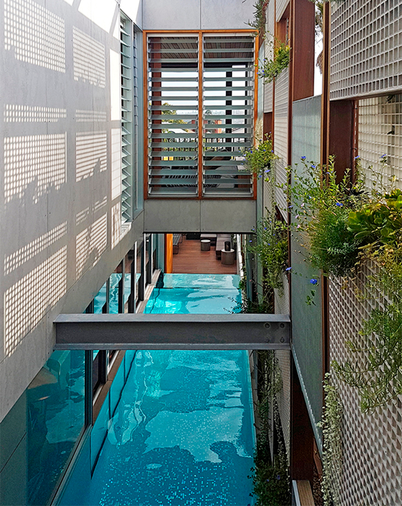 “A impressionante residência unifamiliar localizada em North Bondi foi projetada para entretenimento e família. Um local estreito com problemas de visão, juntamente com um compromisso com o projeto solar passivo e a iluminação natural, liderou o caminho. Devido à natureza do site, o planejamento e o gerenciamento de tempo foram cruciais para garantir que o projeto funcionasse sem problemas.